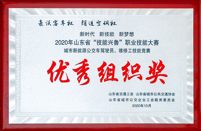 2020年山东省“技能兴鲁”职业技能大赛优秀组织奖