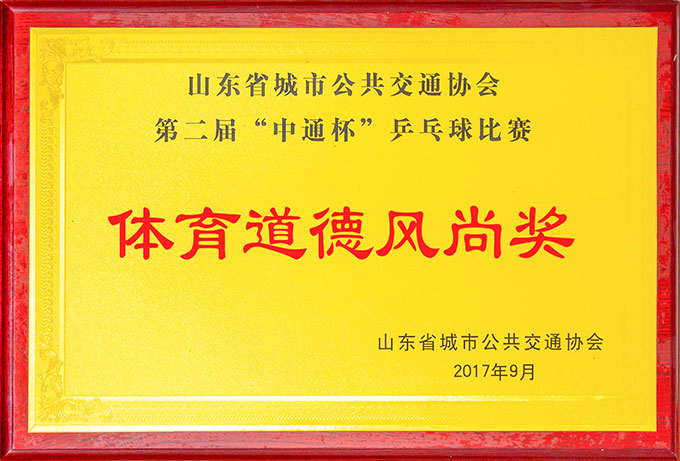 第二届“中通杯”乒乓球比赛体育道德风尚奖