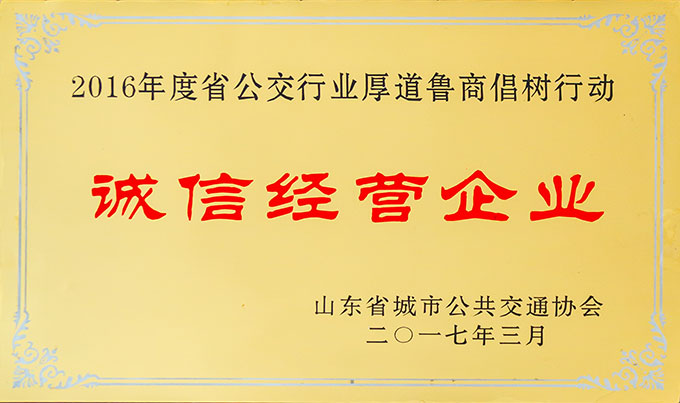 2016年度省公交行业厚道鲁商倡树行动诚信经营企业