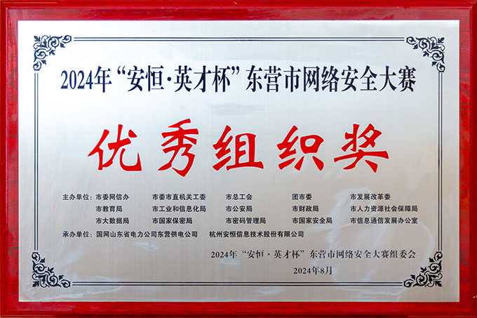 2024年“安恒.英才杯”东营市网络安全大赛优秀组织奖