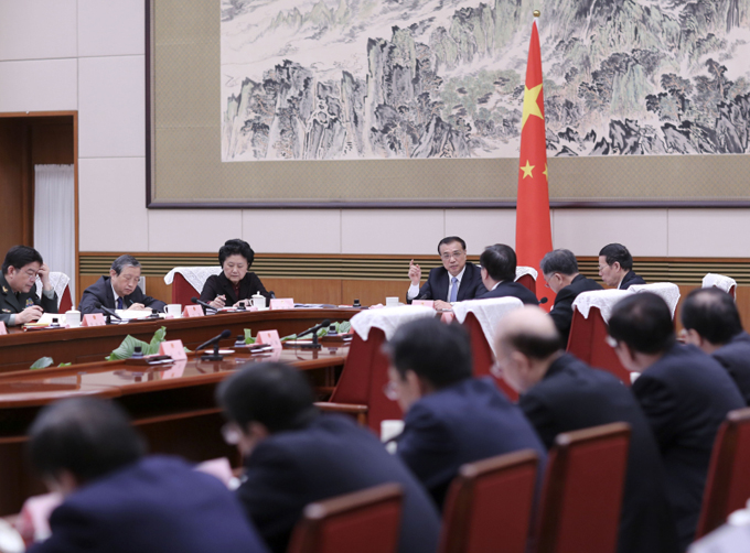 李克强强调,今年是“十三五”开局之年。当前,国际经济走势不确定性很大,不少国际机构连续调低全球增长预期,国内深层次矛盾仍在凸显,要完成全年目标任务,政府工作十分艰巨繁重。要继续在区间调控基础上加大定向调控、相机调控,推进结构性改革特别是供给侧结构性改革,统筹运用财政货币政策和产业、投资、价格等政策手段,为经济发展营造稳定环境。要密切跟踪分析形势,推动各项工作早启动、早见效,进一步激发市场活力,积极培育新的增长动能。要针对薄弱点加大工作力度,努力在扭转工业效益下滑、保持进出口稳定增长、扩大有效投资、促进国企改革增效等方面出硬招、见实效。要对苗头性问题保持警觉,特别是对各种潜在风险做到有备无患。要注意回应社会关切,稳定市场预期,增进社会共识。