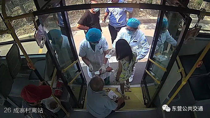 救人后的孙建强仔细检查了三人的伤势,“由于电动车侧翻挤压,大爷胳膊受伤,被扎了玻璃碴子,大娘腰部受伤,小女孩的眼睛受了伤,腿也受了伤,我就赶紧拨打了120。”同时,孙建强向所在车队汇报了遇到的突发情况。车队领导当即表示,安顿好车内乘客,先救伤者。在等待救护车到来的时间,孙建强从公交车上拿了些卫生纸和矿泉水,简单帮三人清理了伤口。23日的东营正是高温天,气象台发布了高温红色预警,当天的气温最高达到了41摄氏度,非常炎热,“我们的公交车上都开着空调,我就把他们扶到公交车上休息。”救护车很快就来了,医护人员在给伤者进行包扎的时候,孙建强一边安抚老人,一边向老人询问要不要帮忙联系家人,老人告诉了他村里书记的电话。经联系,村大队书记表示立即安排相关人员跟进。