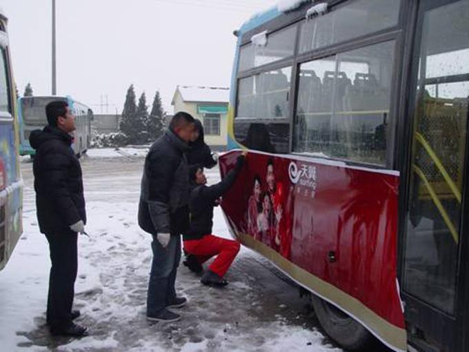 时值立春节气,一场铺天盖地的大雪似乎让春天的脚步放慢了些,但是公司广告部制作人员的工作节奏却没有因此而减慢。为保证所有广告画面春节前能够顺利及时张贴完毕,他们冒着冰雪严寒,加班加点在各处车场紧张而有序地忙碌着。他们不分时段,根据车辆班次间隔来及时调整工作时间,白天时间调整不了就晚上加班,不畏风雪,不畏严寒,克服困难,积极肯干,他们用自己的工作热情和干劲,迎接着春节的到来,确保了广大客户的切身利益,为新一年的工作开了个好头。
