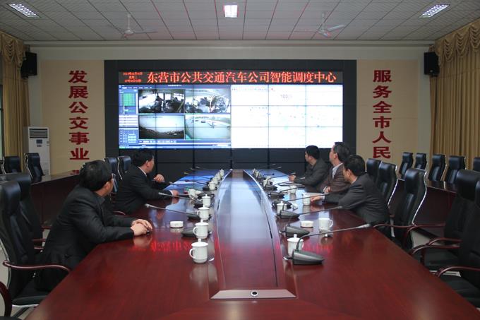 检查组一行来到市公交公司调度服务中心,首先观看了3G视频监控系统,而后市公交公司经理朱新民同志针对节能减排工作做了简要解说。