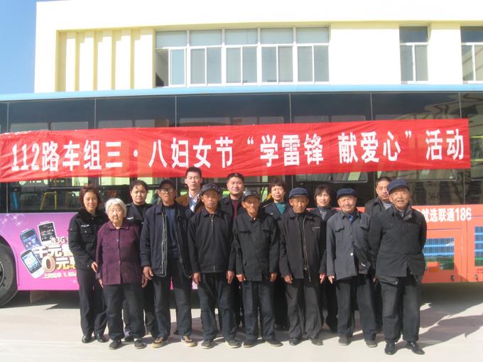 3月4日上午,在三八妇女节和雷锋日即将到来之际,东营公交112路车组驾驶员毛红、赵洪燕、隋云、李芹四名同志带着她们在争创公司文明示范线路评比中获得的2000元奖金购买的食用油、米、面、鸡蛋等一宗生活物品,来到了龙居镇敬老院,代表车组15名姐妹为老人们送上了一份关爱,以学习雷锋同志,弘扬雷锋精神的实际行动喜迎三八妇女节的到来。