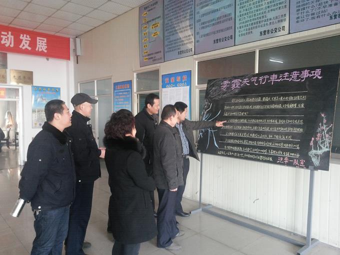 为切实抓好车队春季安全生产工作,消除雾霾天气给安全生产带来的影响。近日,市公交公司汽车一队对全体驾驶员进行了有针对性的安全教育。 本次教育,围绕雾霾天气诱发交通事故的因素、预防和减少交通事故的应对措施、行车中应该注意的事项以及车辆维护保养常识等有关内容展开。安全教育在市公交公司汽车一队调度室分批进行,并制作了防雾霾宣传板报。