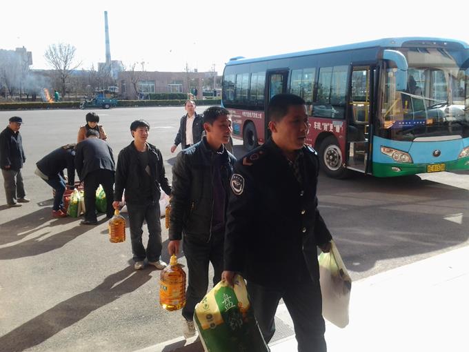近日,在雷锋月期间,市公交公司汽车四队148路、150路文明示范线路部分驾驶员,用他们在公司开展的“文明示范线路”考评中获得的2000元奖金购买了面粉、大米、食用油、鸡蛋等生活必须品,代表车队全体员工前往东营区辛店街道敬老幸福园,为年迈的老人送上自己的爱心。