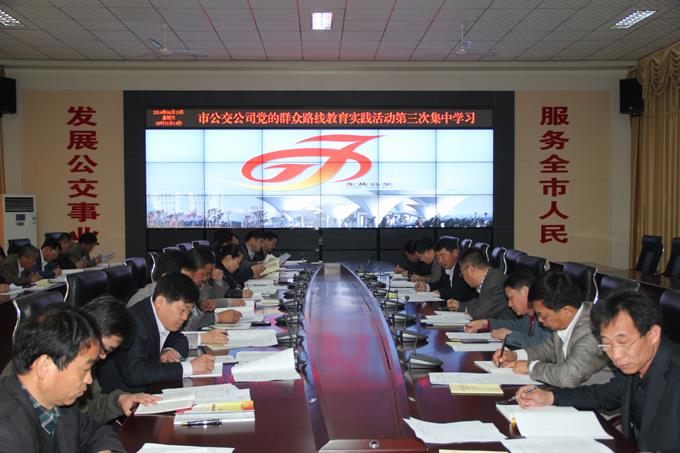 为深入推进教育实践活动开展,加强党的群众路线理论武装,市公交公司党的群众路线教育实践活动第三次集中学习于4月19日组织开展。主要学习了《厉行节约、反对浪费》重要论述摘编和《党的群众路线教育实践活动学习文件选编》等材料。全体党员认真聆听,详细记录,坚持原汁原味、原原本本,通过系统研读,实现理论提升、思想升华。