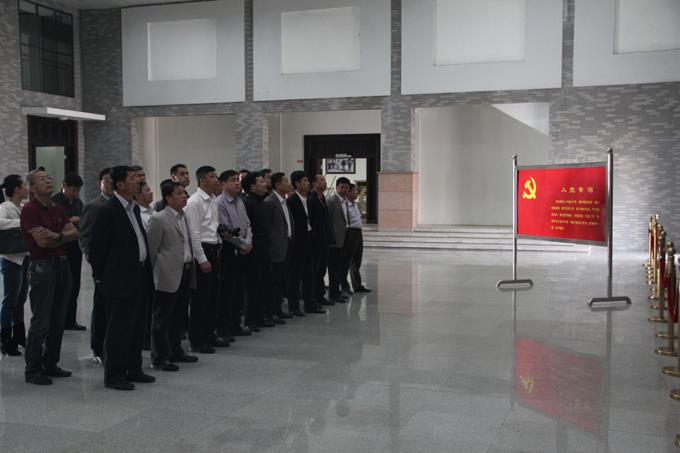 伴随着解说员的讲解,全体党员干部来到了渤海垦区革命纪念馆大厅,参观了展厅内存放的大量历史图片和实物,进一步了解了革命先烈们的丰功伟绩,对渤海垦区的革命历史及垦区精神有了更加深刻的感观认识,使广大党员干部接受了深刻的革命历史洗礼。