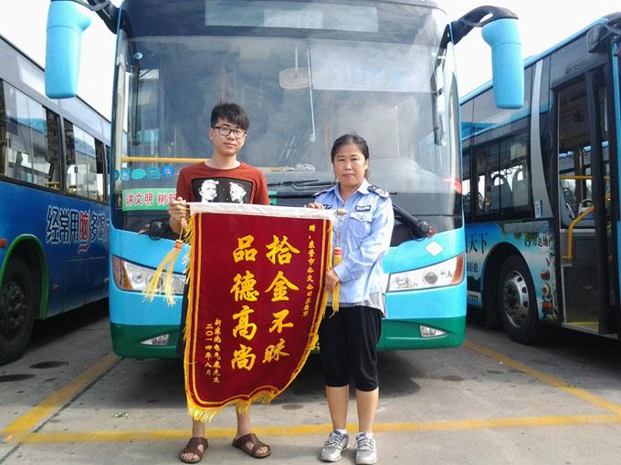 7月31日,鹿先生不慎将钱包遗漏在164路公交车上,于是急忙来到车队寻找,该路驾驶员苏爱军将装有1500元现金、身份证、银行卡和工作证的钱包物归原主,鹿先生非常感动,送来锦旗表示感谢。