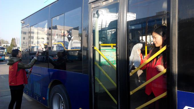 来自东营市职业学校会计学院的大学生和市公交公司汽车一队职工共计24人,分两个小组,一组乘坐公交车上路为特需乘客服务,帮助疏导乘客,另外一组帮助驾驶员擦拭公交车,清扫车厢卫生。大家工作起来井然有序,有条不紊,尤其活跃在车厢为乘客服务的志愿者们,更是得到了乘客的一致好评,成为公交车上一道靓丽的风景。