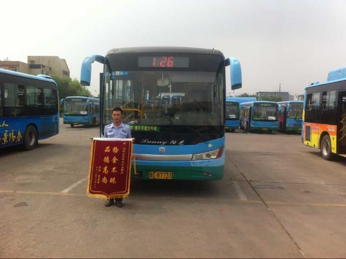 近日,市民井雯君女士专程来到市公交公司汽车三队,将一面绣有“拾金不昧、品德高尚”的大红锦旗送到车队领导手中,衷心感谢126路公交车驾驶员盖群洋师傅将存有大量信息的手机送还自己手中。