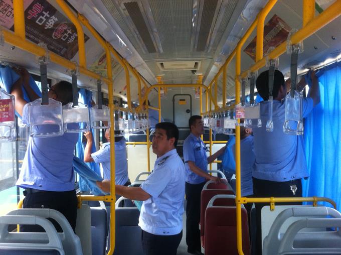 近日以来,天气持续闷热。为提高乘车舒适度,给乘客提供一个清凉的乘车环境,市公交公司汽车三队“手拉手雷锋小组成员”丁文美同志自己出资为车队22辆新能源公交车全部安装了蓝色遮阳窗帘。