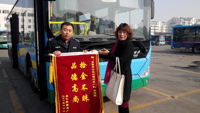 11月2日上午,美亿家家居广场的田女士拿着一面写有“拾金不昧、品德高尚”的锦旗来到市公交公司汽车一队,感谢101路驾驶员李振敏师傅拾金不昧的高尚品德。据公交公司工作人员了解得知,10月30日上午10时左右,田女士乘坐李振敏师傅驾驶的101路公交车来到东城办事,办理完事情后发现手提包不见了,包内有一部平板电脑、1万多元现金和一些结账单据。田女士十分着急,抱着试试看的想法来到市公交公司汽车一队,询问得知驾驶员李振敏师傅已将该包上交车队,车队工作人员也在想办法联系失主,核对情况后,将钱物如数归还给了田女士。