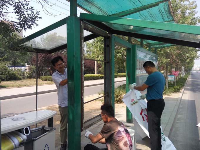 国庆前夕,市公交公司广告部利用一周的时间,对部门所负责的车辆广告,候车厅广告及站牌设施进行逐一排查,对画面破旧损坏的广告立即进行拆除和更换,对候车厅、站牌等设施的卫生进行检查,发现有达不到创城要求的现象,相关人员立即进行处理、改进,确保排查过后广告画面整洁美观、站牌设施标识清楚完整。