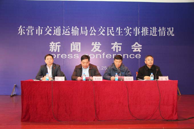 12月25日上午9点30分,东营市交通运输局公交民生实事新闻发布会在市公交公司举行,主要是通报2016年度公交各项民生实事工作的推进情况。东营市交通运输局党委委员、副局长燕渭泽、东营市公交公司副经理赵龙、北京中航讯股份科技有限公司总经理倪军以及来自东营电视台、东营日报社、大众网、齐鲁晚报、黄河口晚刊等9家新闻媒体记者出席了新闻发布会。会议由东营市公交公司党委书记、经理朱新民主持。