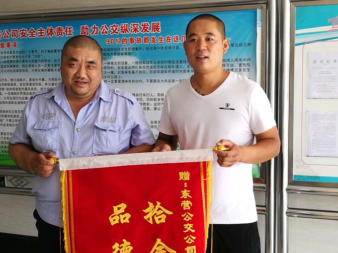 2017年8月21日下午17:30分左右,市公交公司汽车七队驾驶员杨宝海在执行102路任务的时候,在车厢内捡到钱包并及时通知了车队领导。当失主抱着试探的心态拨通了公交七队调度室电话,根据失主描述的情况,确认钱包在公交公司汽车七队。 失主火速赶到公交车队后,亲自打开钱包一看有原来的现金5630元、七张银行卡和身份证,失主喜出望外,激动的紧紧地抱住了驾驶员。 事后,失主拿着锦旗来到市公交公司汽车七队,找到车队领导和驾驶员,感谢拾金不昧的好司机---杨宝海。