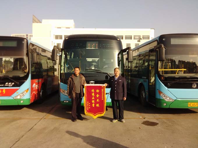 11月8日上午,北京百利达防腐工程有限公司的黄先生拿着一面写有“拾金不昧,传递正能量”的锦旗来到市公交公司汽车一队,感谢171路驾驶员王玉斌师傅拾金不昧的高尚品德。据车队了解得知,11月6日晚22:10时左右,黄先生乘坐王玉斌师傅驾驶的171路公交车,下车到工地附近旅馆后发现钱包不见了,钱包内有2400元现金、身份证和驾驶证等物品。第二天一早,黄先生抱着试试看的想法来到市公交公司汽车一队驻地,询问得知驾驶员王玉斌师傅在停车后检查车辆时,发现了一个装有2400元现金、身份证和驾驶证等物品的钱包。