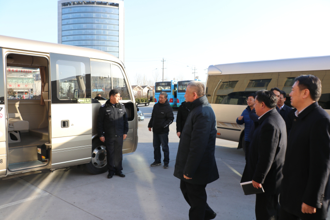1月20日下午,副市长李俊峰一行到市公交公司检查指导春运安全工作。市政府副秘书长邢金书,市交通运输局党组成员、副局长杨忠起,市交通运输局党组成员张文亭,市公交公司党委书记、经理朱新民等同志陪同。