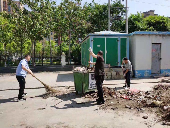 为喜迎建党100周年,加强院落环境卫生治理工作,2021年6月4日下午两点半,市公交公司汽车七队支部委员会全体党员在党史教育集中学习结束后,由支部书记李首勇同志带头对车队驻地院落内的绿化带、停车场、办公楼周边以及各卫生死角进行了彻底清扫。虽然天气炎热风大,但是同志们不畏辛苦,干劲十足,个个争先,经过近两个小时的共同努力,院落死角内的枯树枝、杂草、塑料袋、废纸屑、污泥等垃圾杂物被完全清理干净并集中装进了垃圾桶,车队院落卫生面貌焕然一新。