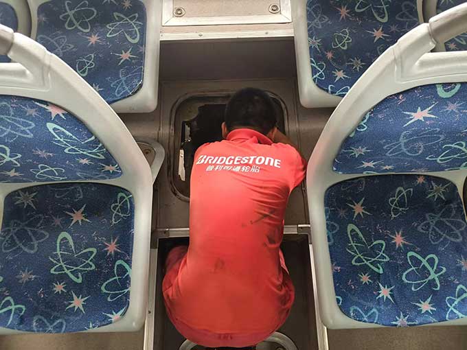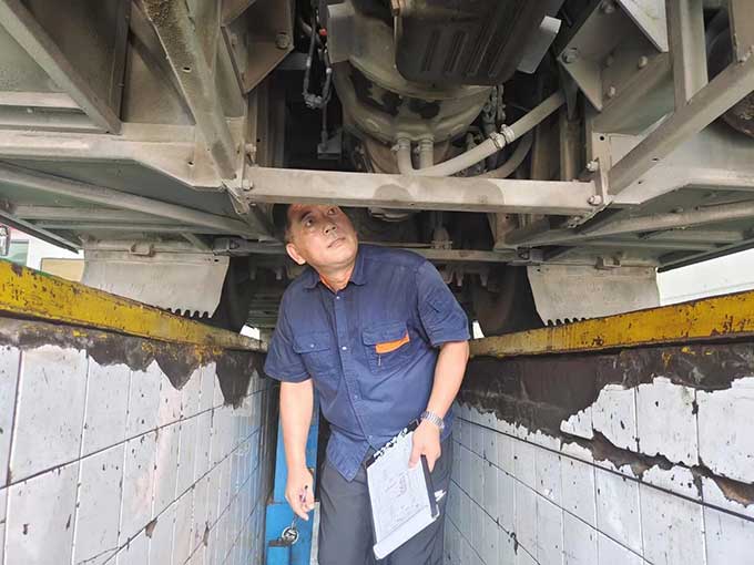 骄阳似火,汗水流淌,沾了头发,湿了脸颊,却阻挡不了他们对工作的热情,这是一种承诺,更是一种责任与担当。相比爬车顶维修空调的辛苦,钻地沟也的滋味更不好受。不足一米深的地沟里,不仅闷热,而且容易沾满油垢。背靠坚硬的水泥瓷砖、头顶公交车底盘,承受车辆部件散发的热量,犹如钻进烤箱。狭小的空间内,闷热的空气弥漫着刺鼻的机油味,底盘零部件上的尘土和油污随着维修时的触碰不时地落在头上、脖子里、衣服上。为了排查故障,维修职工需要一直猫着腰、歪着头,手上、身上满是机油和污垢。几分钟的时间,豆大的汗珠就成串往下掉,工作服更是紧紧地“贴”在了身上。有时候,要检修的部位比较靠里,在车底也无法触及,只能从车厢里打开后座,顺着几十厘米直径的小洞‘钻进去’,基本上就是上半身在发动舱内,下半向在车厢内。尽管如此,保修职工仍然凭借顽强的斗志和精益求精的工匠意识,克服重重困难,完成各项保修任务。