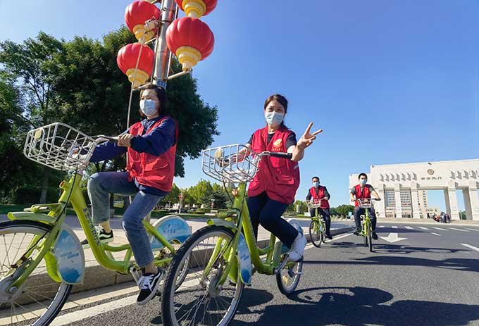 近日,交通运输部、公安部、国家机关事务管理局、中华全国总工会等联合印发通知,定于9月份开展2022年绿色出行宣传月,9月19日至25日开展公交出行宣传周活动。本次活动以“绿色出行,你我同行”为主题。19日下午,一群身着红色志愿马甲的志愿者们从市政广场新世纪门出发,沿胜利大街一路向南,经过“最美一条街”潍河路,最终从胶州路返回市公交公司,志愿者们通过这一路的骑行方式,做了绿色出行的践行者和传播者。