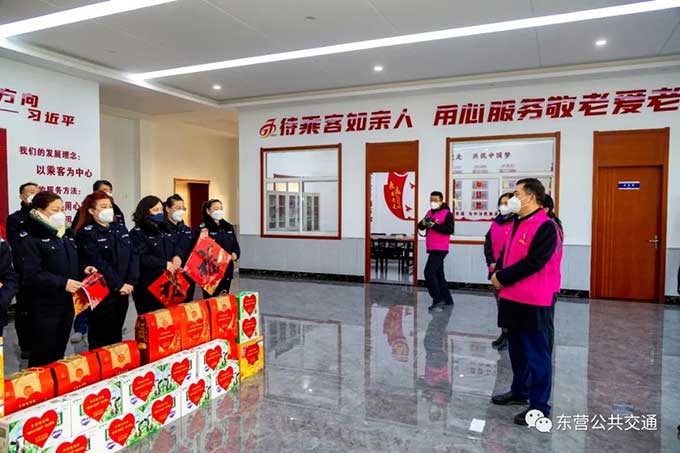 在新春佳节到来之际,1月20日上午,市妇联党组书记、主席侯丽霞带领市妇联、东营农商行组成的慰问队到市公交公司进行“黄河口过大年”送温暖活动,看望慰问坚守在工作岗位的一线公交驾驶员,并致以新春的问候与祝福。候丽霞详细了解了一线公交驾驶员的身体状况和家庭生活情况,叮嘱公交驾驶员要做好疫情防控,合理安排好工作和休假,祝愿大家度过一个快乐祥和的春节。同时,还送上春联、牛奶、八宝粥等慰问物资。