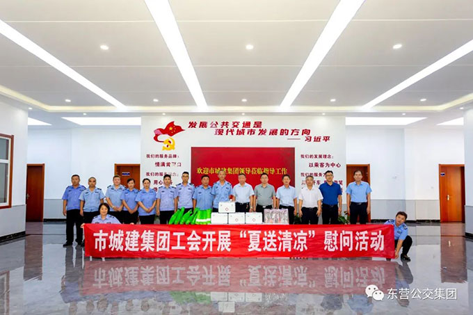 2023年8月3日上午,市城建集团党委副书记、总经理李德月,工会主席李鹏、总工程师程云奎一行到东营公交集团开展“夏送清凉”活动,东营公交集团赵龙同志陪同慰问活动。