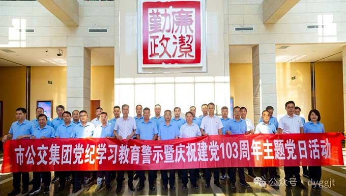 为庆祝建党103周年,纵深推进全面从严治党,努力推动党纪学习教育走深走实,教育引导广大党员干部坚定理想信念,牢记使命宗旨,筑牢纪法底线,2024年6月27日下午,市公交集团组织党员干部赴市廉政教育中心开展党纪学习教育现场警示暨庆祝建党103周年主题党日活动,集团公司党委成员、各支部书记及各部门单位主要负责同志参加。