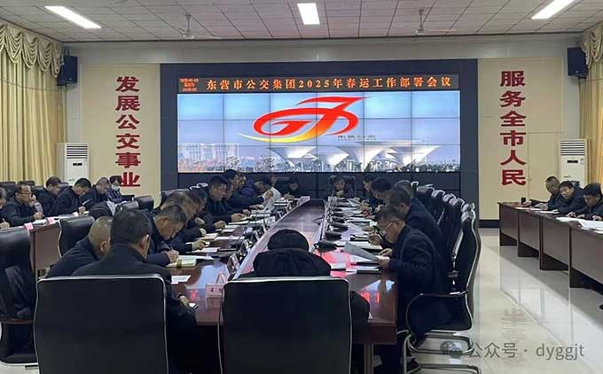 近日,东营市公交集团组织召开了2025年春运工作部署会议。集团公司党委书记赵龙同志出席会议并讲话,总经理刘海同志主持会议,安全总监陈海波同志传达了《东营市公交集团2025年春运工作组织保障实施方案》。集团公司党委班子成员、各职能部门、运营生产单位负责人出席会议,各运营单位分管安全负责人列席了会议。