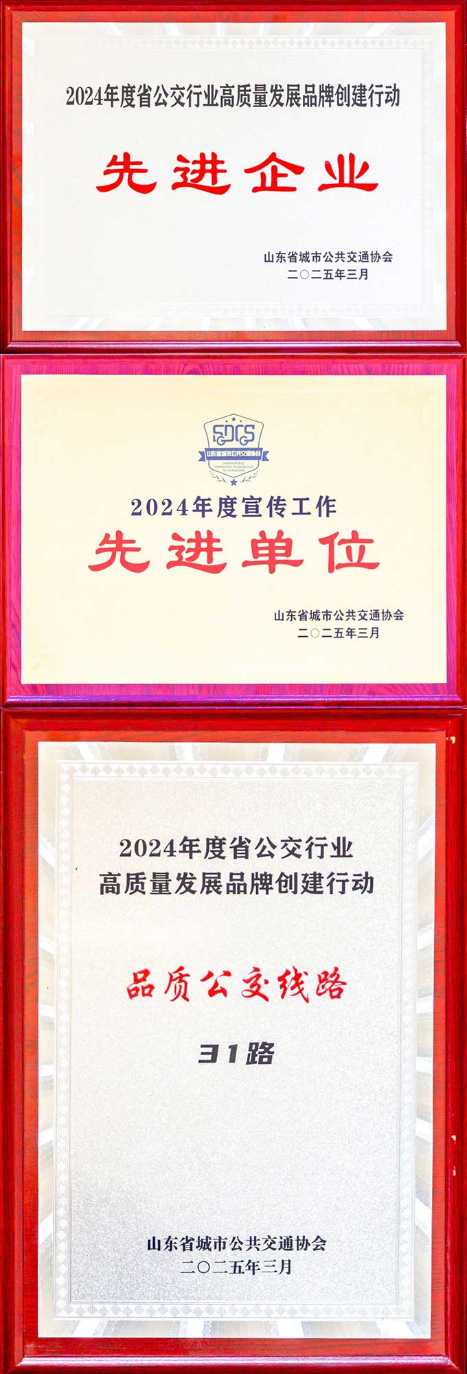会上,东营市公交集团获得2024年度全省公交行业宣传工作先进单位、全省公交行业高质量发展品牌创建行动先进企业等荣誉称号,汽车三队31路公交线路被评为2024年度全省公交行业高质量发展品牌创建行动“品质公交线路”称号,李卫校、高新杰、刘忠华等3名同志被评为全省公交行业高质量发展品牌创建行动“诚信服务标兵”。