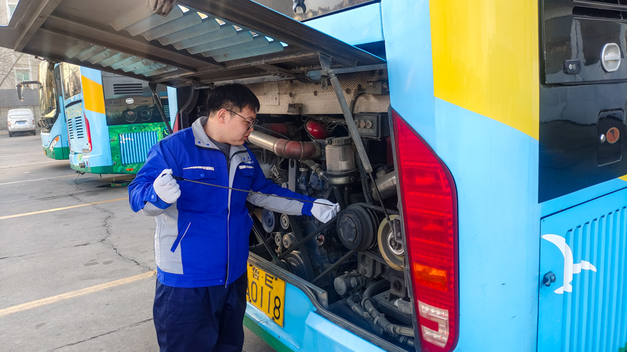 保修厂里保障忙。维修师傅们坚守岗位,对回场车辆进行细致保养,排查隐患、随时准备应急抢修。充电工穿梭在场站,密切关注充电状态,为新能源公交车“续航赋能”。他们用专业与责任,确保每一辆车满电出发、安全上路,为节日运营保驾护航。