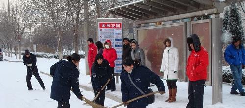 1月9日我市普降中雪,气温骤降,给公交正常运行带来巨大困难。为克服雪后路滑给安全运行带来的不利因素,保障市民出行和行车安全,汽车七队组织干部职工到周边主要站点和路口清扫积雪、撒盐融雪,获得了过往乘客的一致好评。