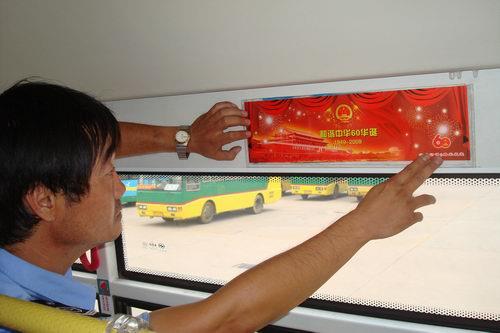 国庆节来临之际,汽车七队8路车组在车厢张贴“和谐中华60华诞”、“喜迎60周年国庆庆典”的庆国庆宣传贴,为车厢增添了浓厚的节日气氛 。