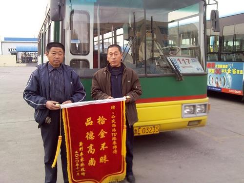 11月17日,家住垦利县城的李家林先生拿着写有“拾金不昧、品德高尚”的锦旗来到了市公交公司汽车三队对李业县师傅表示感谢。经车队了解得知,11月10日汽车三队驾驶员李业县在运行完117路班次后正常清理车厢卫生时发现了一个黑色皮包并立即将皮包上交车队。车队负责人通过现场清点,发现皮包内共有现金2600余元,账单一宗,根据包里面的信息及时联系到失主李家林。当李家林先生看到了失而复得的钱包时,当即拿出200元塞给李业县以表示谢意,被李业县婉意谢绝。回去后,李家林先生心情久久不能平静,特意制做了锦旗送到车队,以表达感激之情,并要求车队对李业县师傅这种拾金不昧的优良品质进行表扬。李业县同志作为刚到公交公司参加工作的新员工,在面对失主巨额财物的“诱惑”下,不为利益所动,秉承和发扬了公交人一贯的高尚品质,他的所作所为充分展现了一名公交驾驶员应有的职业道德素质。