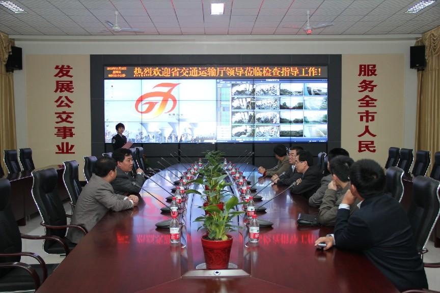 11月18日上午,省交通运输厅“两保两树”活动指导组王际逊处长一行,在市交通运输局工会主席王爱军、运管处处长李希俊、市公交公司经理朱新民等有关领导的陪同下,到东营公交智能调度指挥中心对3G视频监控系统进行了检查指导。
