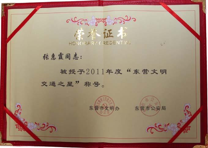 近日,在东营市文明办和东营市公安局联合组织开展的“东营文明交通之星”评选活动中,市公交公司张惠霞、刘军利、杨金光等三名公交驾驶员经过层层选拔在1000余名候选人中脱颖而出,最终获得了“东营文明交通之星”荣誉称号。