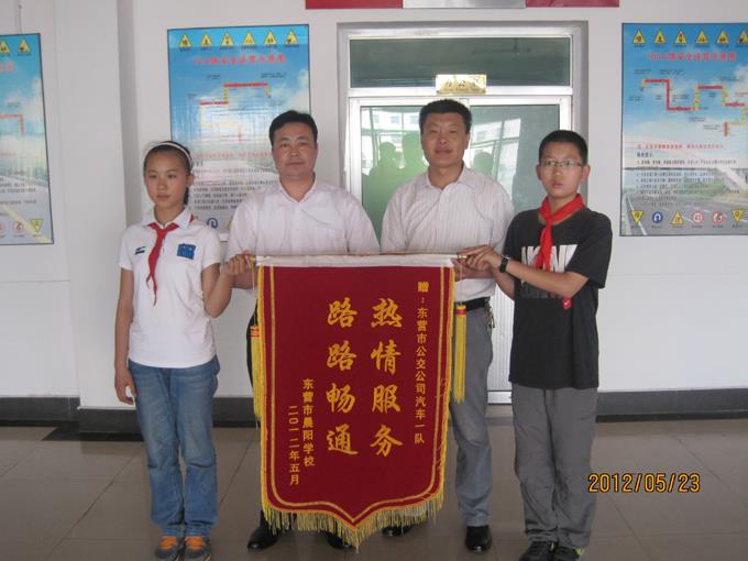 5月23日上午,市晨阳学校师生三人拿着一面写有“热情服务、路路畅通”的锦旗来到市公交公司汽车一队,感谢车队在5月17至18日为期两天的旅游包车中,为晨阳学校两千多名师生提供的热情、周到、优质的服务。对近几年公交服务质量的不断提升表示称赞,并向公交广大干部职工表达深深的敬意。