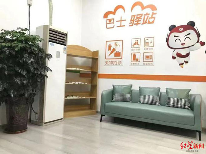 7月9日,红星新闻记者从成都公交集团获悉,为提升服务质量,延伸公交场站服务功能,近日,成都公交首个“巴士驿站”在金沙公交枢纽站正式亮相。“巴士驿站”内可提供失物招领、换乘咨询等多项出行服务,沙发、电脑、空调、饮水机、微波炉、冰箱、充电插座等便民服务设施一应俱全,供乘客免费使用。