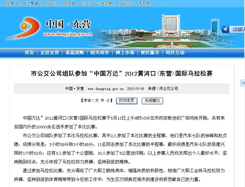 2012年5月16日东营市政府网站报道