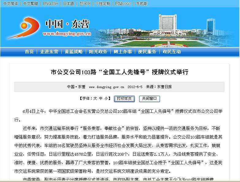 2012年6月4日东营市政府网站报道