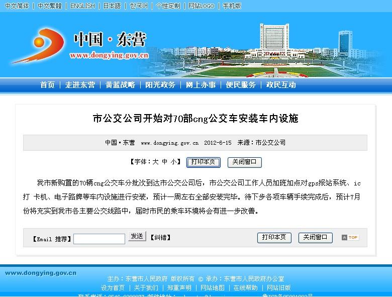 2012年6月15日东营市政府网站报道